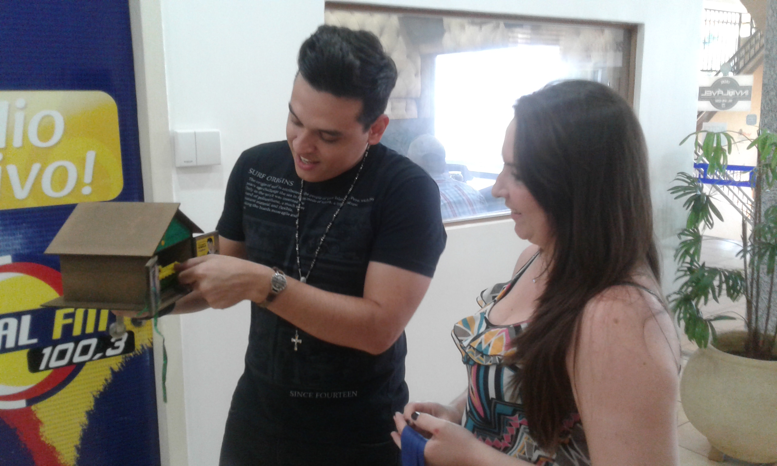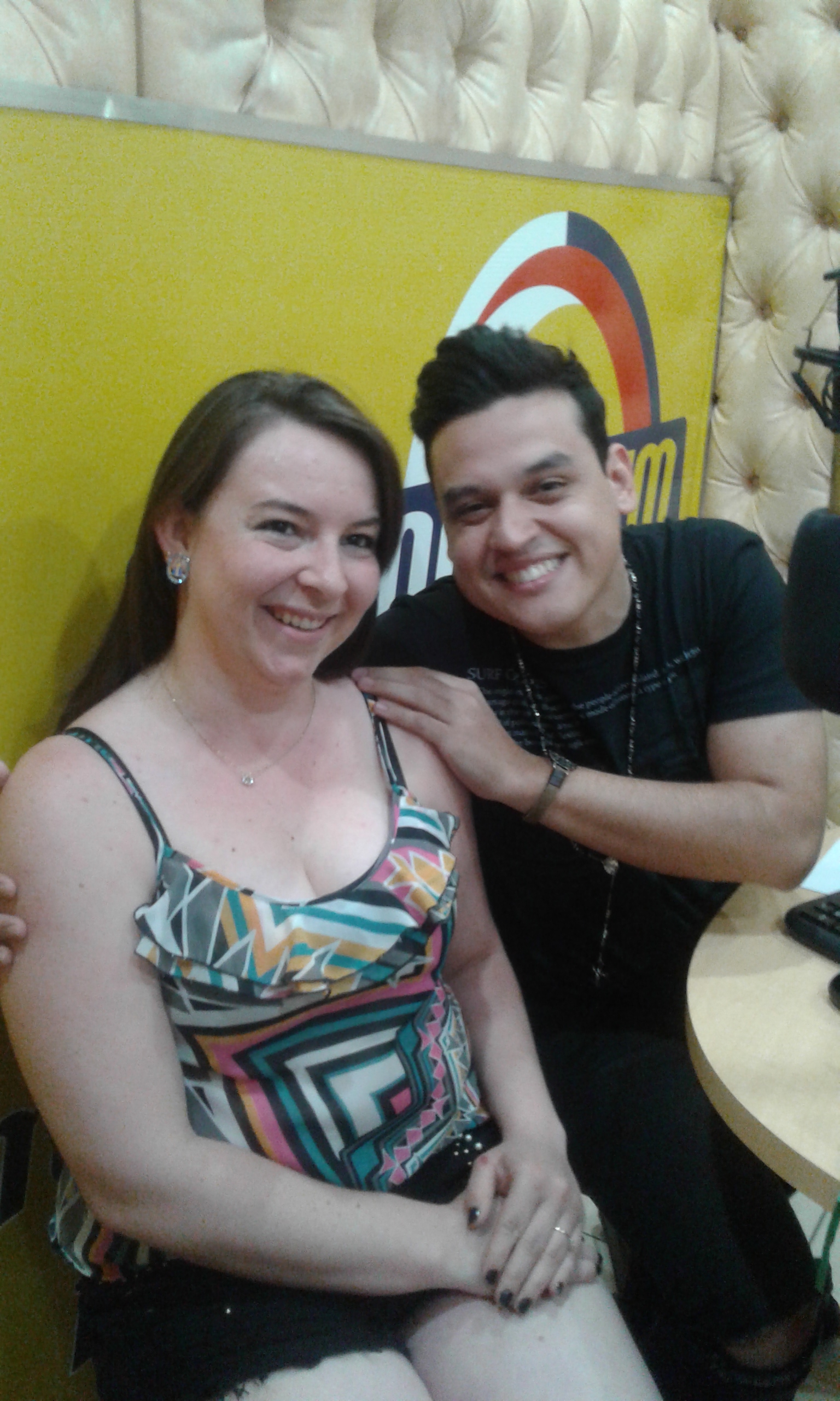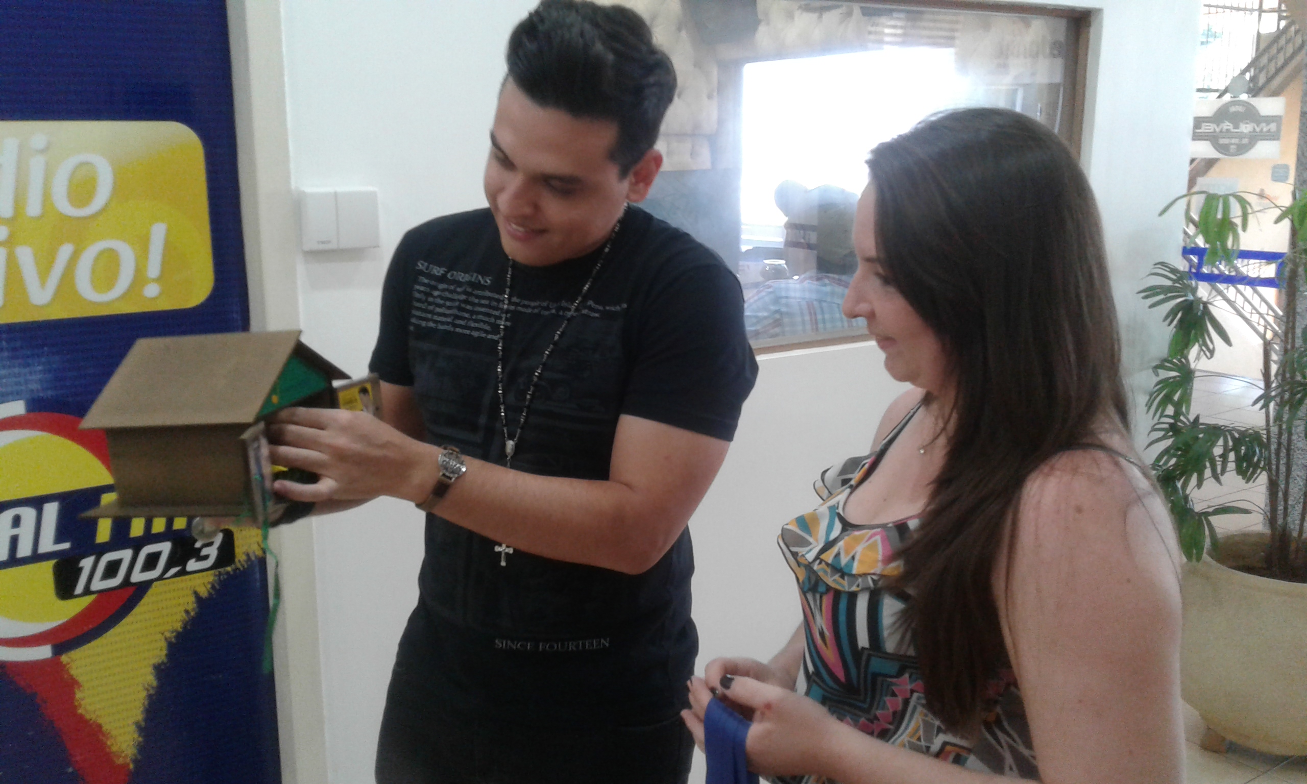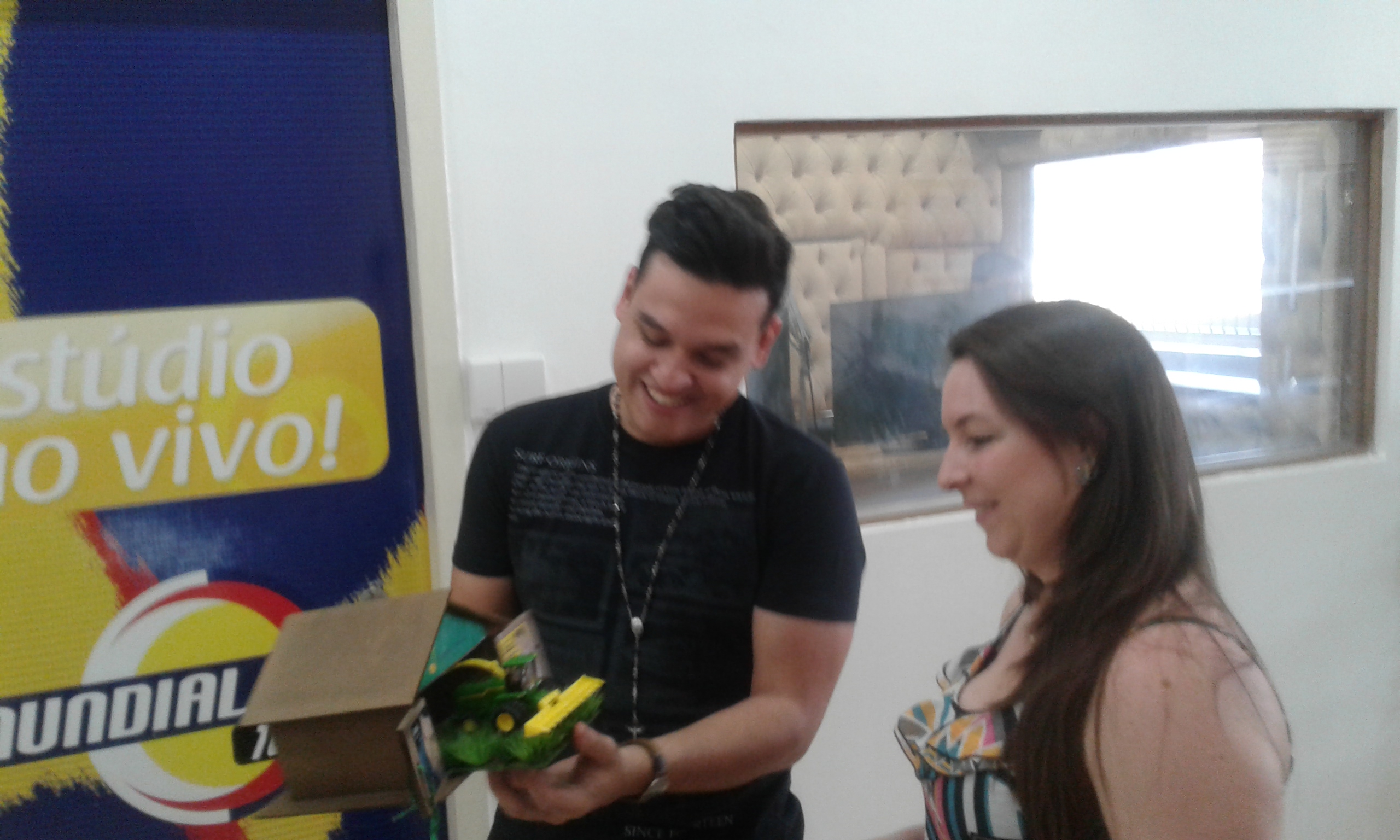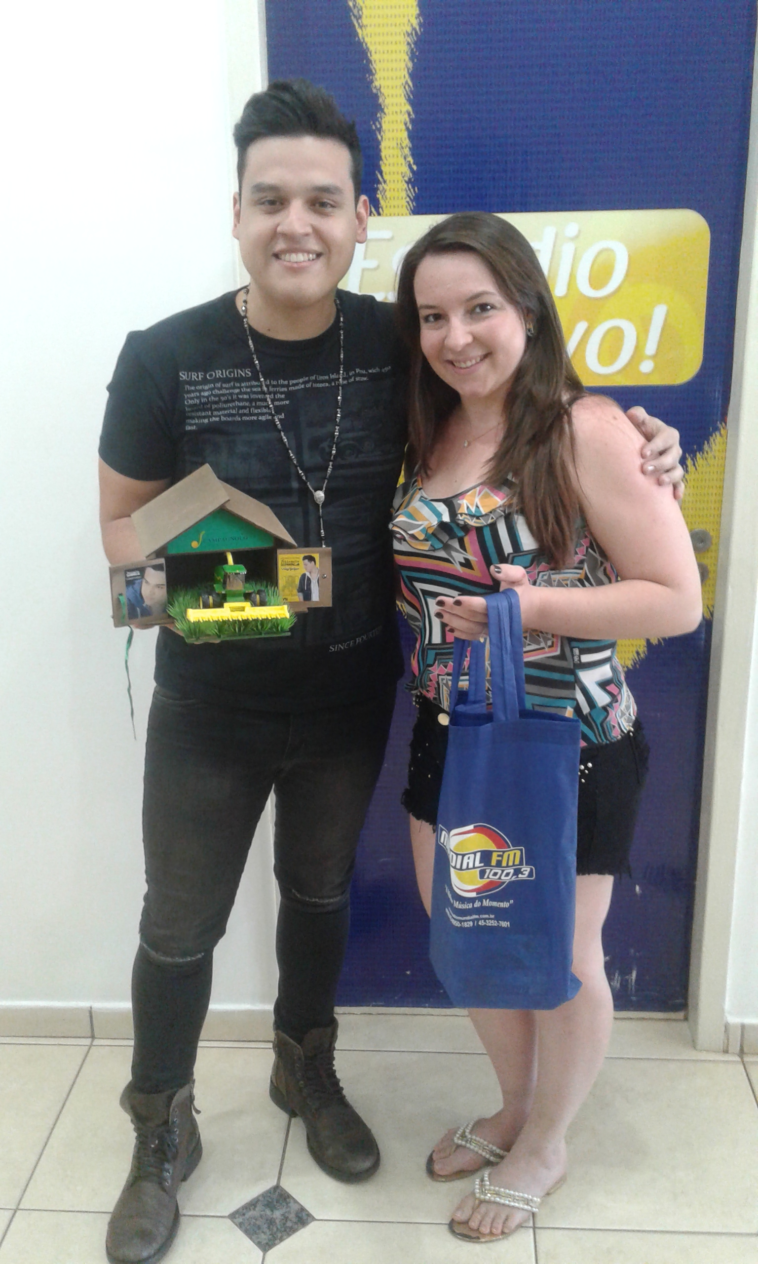 Hoje esteve no Estúdio da Rádio Mundial FM a Ganhadora Cristiane Thaís Bourscheid para a entrega da Promoção da FORRAGEIRA DO PATRÃO - Cantor Victor Hugo - num bate papo descontraído com Victor Hugo e a Equipe Mundial.